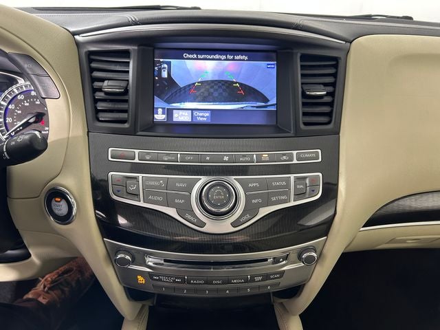 - Radio: AM/FM/CD/MP3 Audio System -inc: 6-speakers, Radio Data System (RDS), speed-sensitive volume control, 8-inch color vehicle information display, INFINITI InTouchTM system w/HD radio, SiriusXM Satellite radio w/90 day complimentary trial, SiriusXM travel link w/4 year complimentary trial access to weather, fuel prices, stocks, sports and movie times, voice recognition for audio, Bluetooth®, vehicle information including music search by voice, streaming audio via Bluetooth® wireless technology, USB connection port for iPod interface and other compatible devices, illuminated steering wheel-mounted audio controls, auxiliary audio/video input jacks in front center console, SMS/email display function, 3 USB charging ports, and INFINITI controller